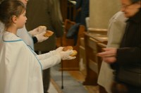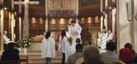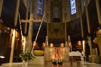 Le cierge de l'année Sainte Geneviève est arrivé ! Il a été allumé et présenté aux paroissiens par le groupe Sainte Geneviève des servantes de l'assemblée.