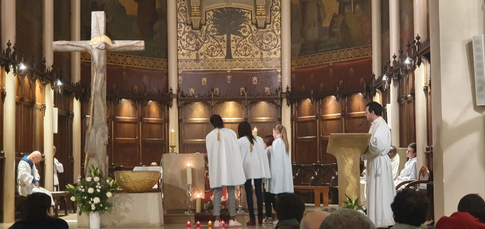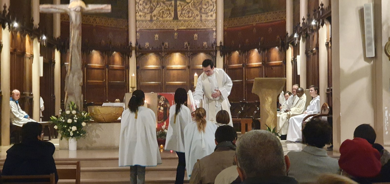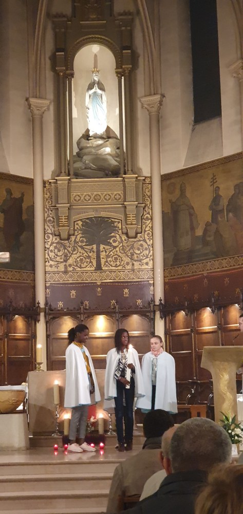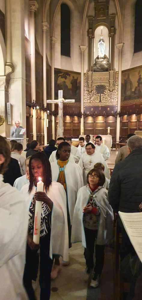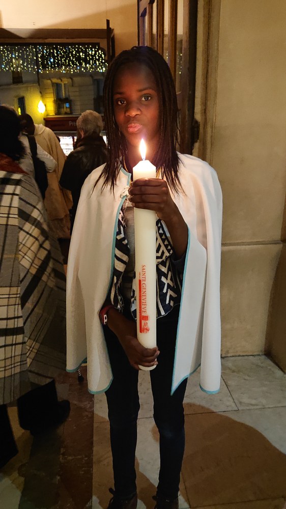Le cierge de l'année Sainte Geneviève est arrivé ! Il a été allumé et présenté aux paroissiens par le groupe Sainte Geneviève des servantes de l'assemblée.