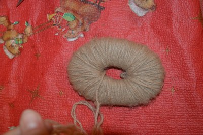 Couper deux ovales dans le carton et couper une fente dans chacun d'eux à des endroits différents (cf photo ci-dessus). Ensuite, enrouler la laine autour des deux ovales.