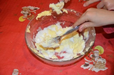 Travailler le beurre en pommade avec le sucre jusqu'à ce que le mélange devienne mousseux.