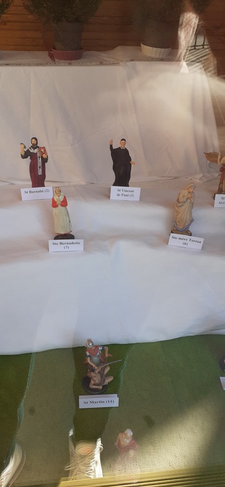C'est avec surprise que nous avons retrouvé dans nos réserves des dizaines de figurines de saints et saintes ! Nous les exposons grâce à notre belle équipe, Blanche, Maelis, Margaux et Claire ainsi que Laure qui coordonne. Les enfants du quartier aiment ce nom de crèche pour voir les moments liturgiques de l'année. Venez donc voir cette "crèche" de la Toussaint en essayant de trouver le nom de certains saints en insérant votre réponse dans la boîte sur la crèche. Résultat le dimanche 14 novembre après la messe de 10h00 sur le parvis.