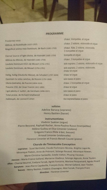 Sur le thème de la "fête au rendez vous" nous sommes heureux de dédier ce concert à Laurence qui aimait tant louer le Seigneur dans cette Eglise.