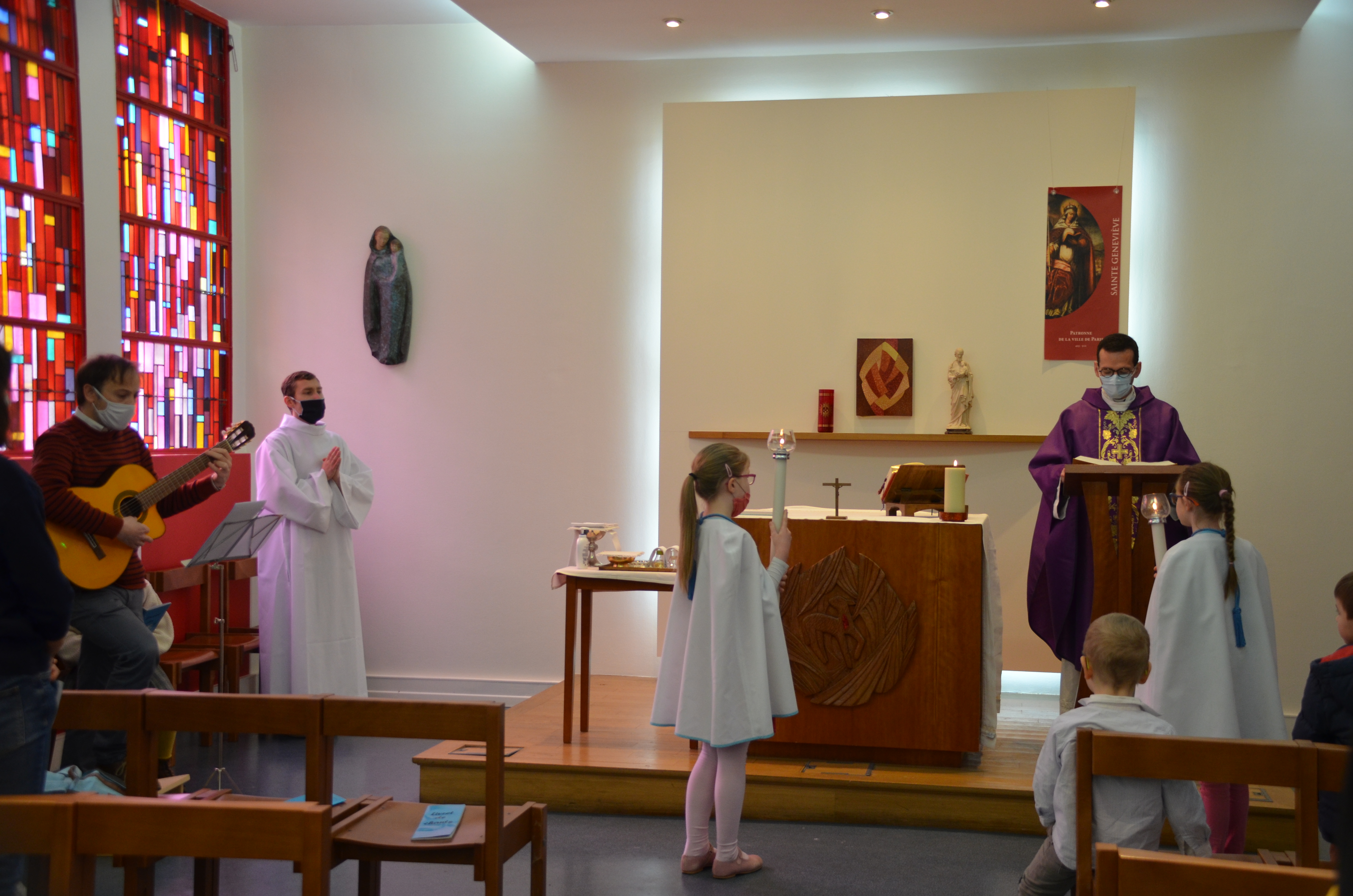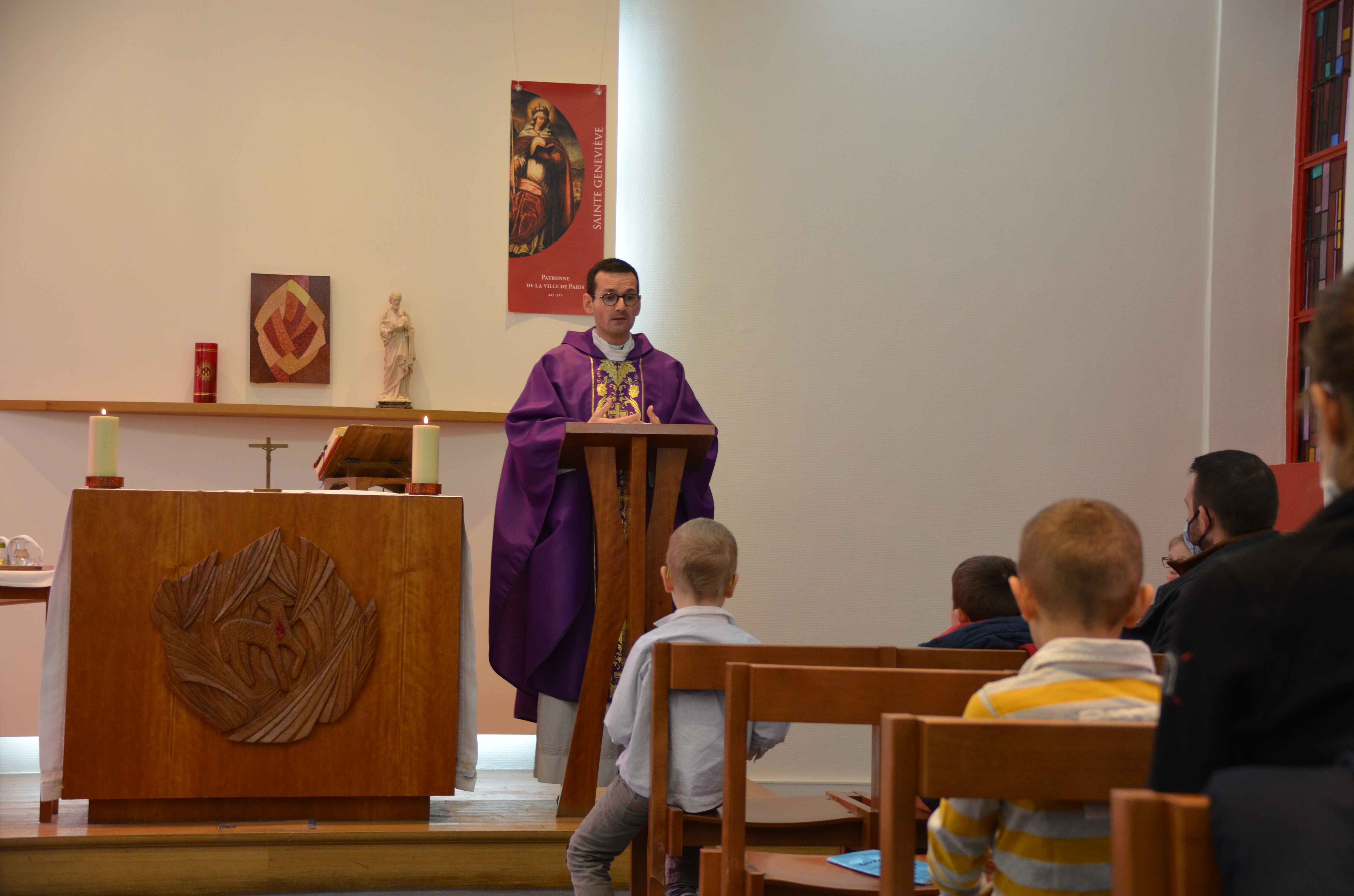 Chaque dimanche, à la messe de 10h, les enfants de 3 à 6 ans sont invités à la sacristie des clercs pendant la liturgie de la Parole pour vivre une séance sur un thème de la foi.