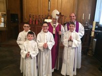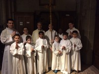 4 servants de messe de la paroisse sont venus aider le Cardinal Vingt-Trois samedi 12 mars pour l'appel décisif des jeunes catéchumènes du Diocese à l'église Saint Roch.