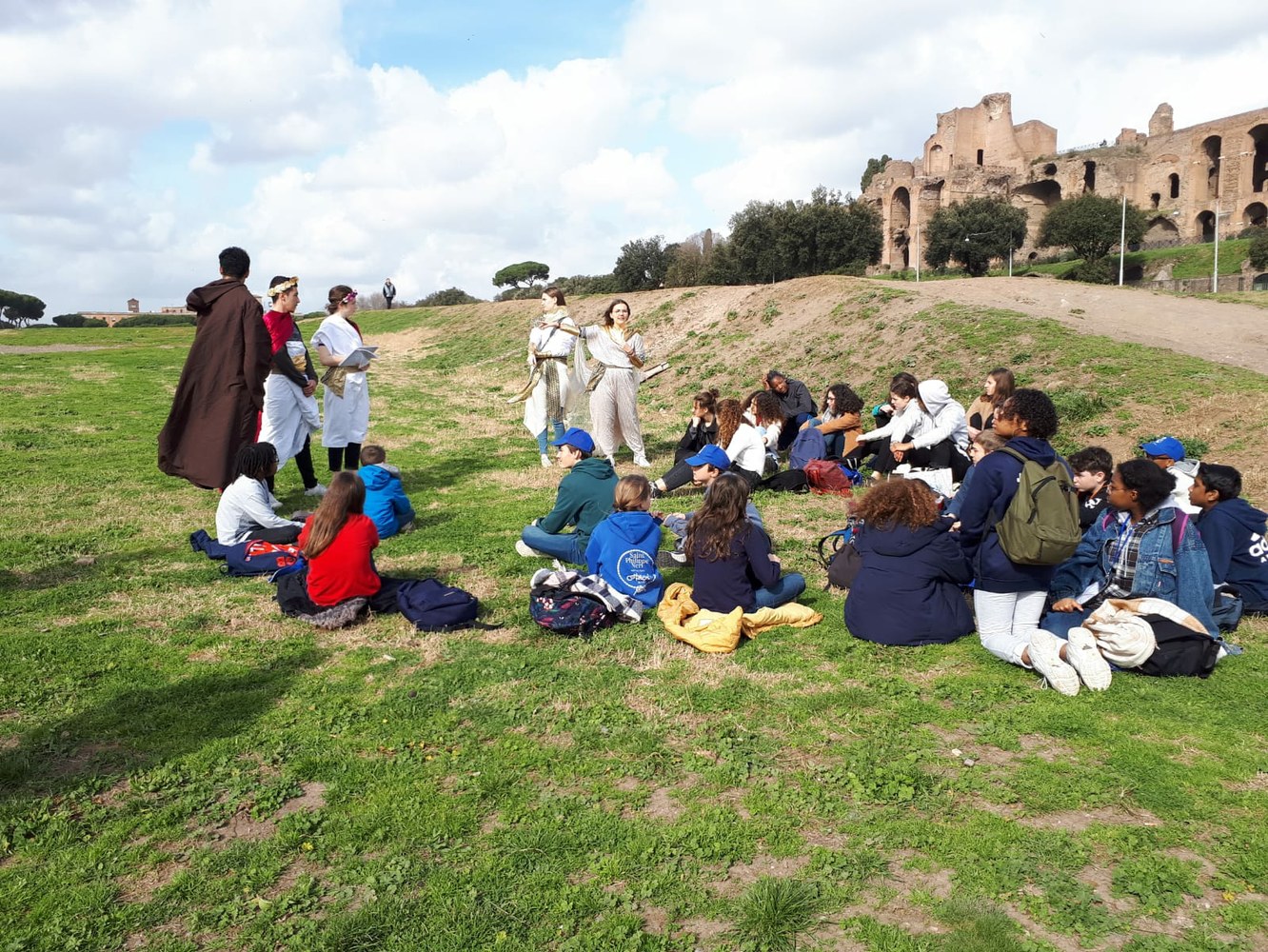 Visite du Colisée, jeux sur Circus Maximus et messe à Saint Paul hors les murs et un bon dîner pour terminer la journée