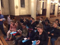 Avant la messe internationale et le chapelet dans La Chapelle des apparitions.