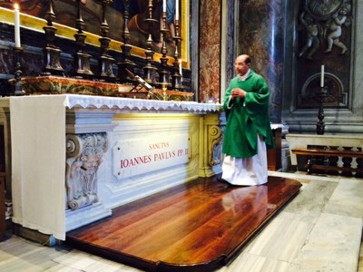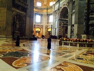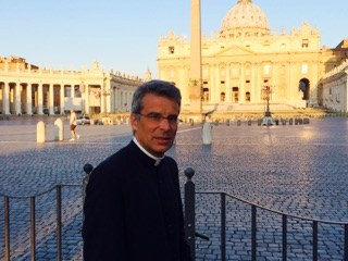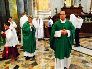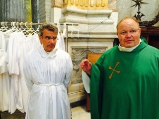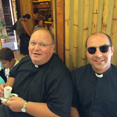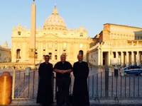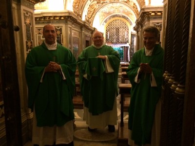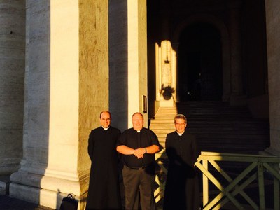 Les prêtres sont en session de rentrée à Rome. Autour du curé de la paroisse le P. Benoît Bourgoin : P. Camille Millour, P. Olivier Derlincourt.